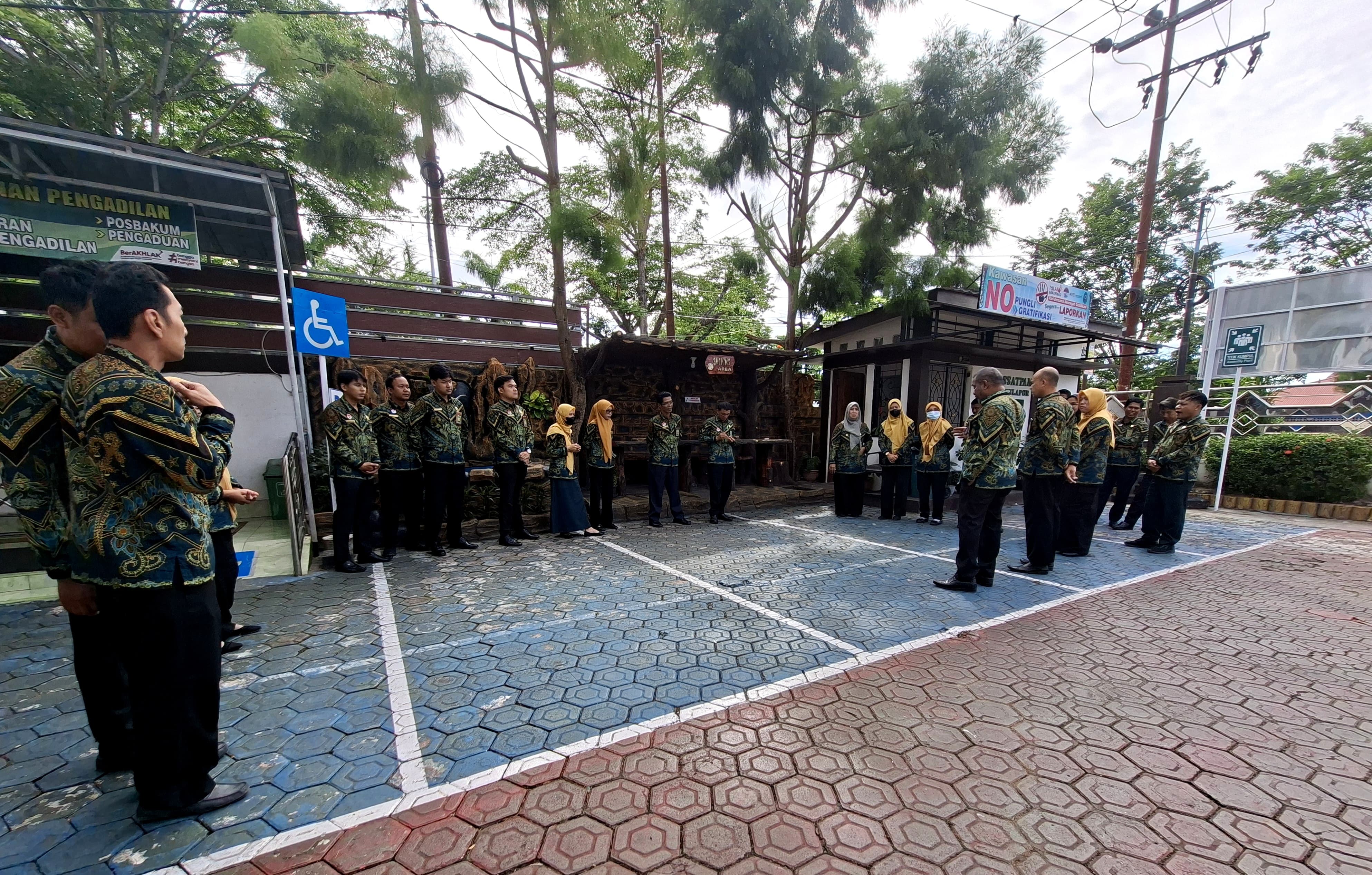 Jayapura, 16 April 2026 - Mengawali kegiatan pagi hari ini Kamis (16/04) Pengadilan Agama (PA) Jayapura kembali menggelar kegiatan rutin yang dilakukan tiap hari yaitu GRATIS BRO (Gerakan Anti Gratifikasi, Anti Sampah, Brifieng dan Do’a). Kegiatan yang bertujuan untuk menanamkan budaya kerja anti korupsi dan budaya kebersihan ini, bertempat di halaman depan kantor yang di mulai tepat pada 08:00 WIT. Seluruh pimpinan dan aparatur dengan semangat dan kompak mengikuti kegiatan ini supaya dapat terlaksana nya tujuan dari kegiatan ini