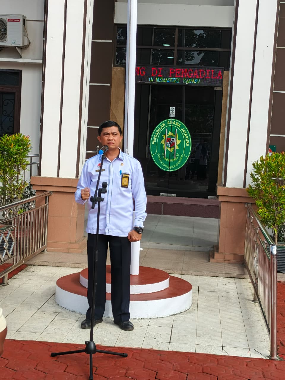 Setelah Pemimpin Apel mengistirahatkan peserta, Sekretaris PA Jayapura mulai menyampaikan pembinaannya. “Alhamdulillah Kita semua bisa berkumpul kembali ke kantor tercinta melaksanakan apel pagi ini dan menjalankan kewajiban kita sebagai ASN dengan cuaca yang sangat cerah” Ungkap Beliau