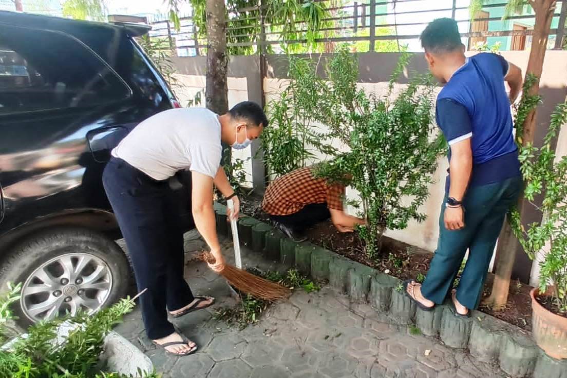 Segenap Pegawai dan PPNPN Pengadilan Agama Jayapura melakukan kegiatan Jum’at bersih di halaman kantor dengan merapikan rumput dan ranting pohon. Kegiatan tersebut biasa dilakukan setiap hari Jum’at, selama tidak ada kegiatan insidentil penting lainnya.