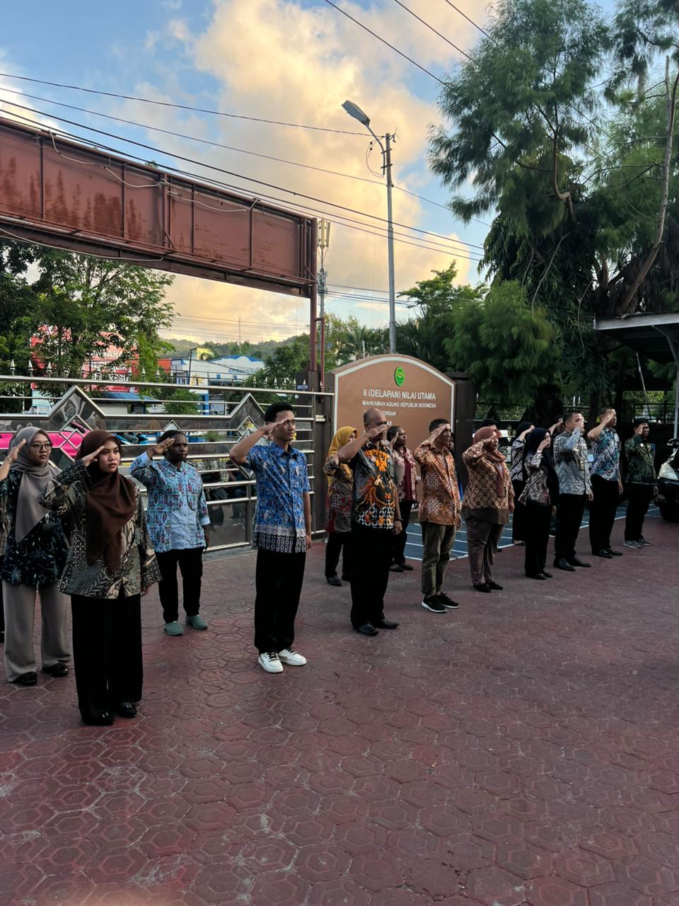 Jayapura, 17 Oktober 2025 Bertempat di halaman depan, hari ini (Jum’at, 17/10) seluruh aparatur Pengadilan Agama (PA) Jayapura menggelar apel sore. Kegiatan tersebut dimulai tepat pukul 17.00 WIT. Pelaksanaan Apel Jum’at sore ini berfungsi sebagai media menjaga kedisiplinan dan menjadi silaturahmi para pegawai guna mengakhiri kinerja selama sepekan ini.