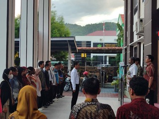 Jayapura, 31 Oktober 2025 Bertempat di halaman depan, hari ini (Jum’at, 31/10) seluruh aparatur Pengadilan Agama (PA) Jayapura menggelar apel sore. Kegiatan tersebut dimulai tepat pukul 17.00 WIT. Pelaksanaan Apel Jum’at sore ini berfungsi sebagai media menjaga kedisiplinan dan menjadi silaturahmi para pegawai guna mengakhiri kinerja selama sepekan ini.