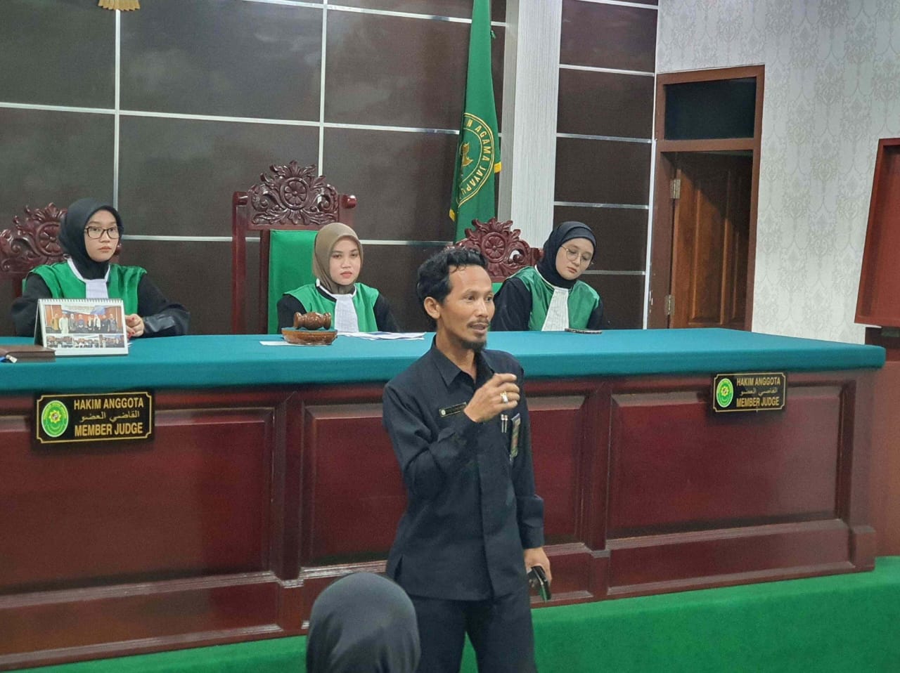 Jayapura, 18 Desember 2024 – Sinergi antara Pengadilan Agama (PA Jayapura) dengan IAIN Fattahul Muluk, Papua bukan hanya dengan adanya PPL. Hari ini, Rabu (18/12) peran aktif PA Jayapura dalam menularkan ilmu digelar melalui praktik Sidang Semu. Bertempat di ruang Sidang Cakra, tepat pukul 15.30 WIT 14 mahasiswa Fakultas Syari’ah institut tersebut mengikuti kegiatan tersebut. Kehadiran mereka juga didampingi oleh dosen pamong, Amri, M.H.