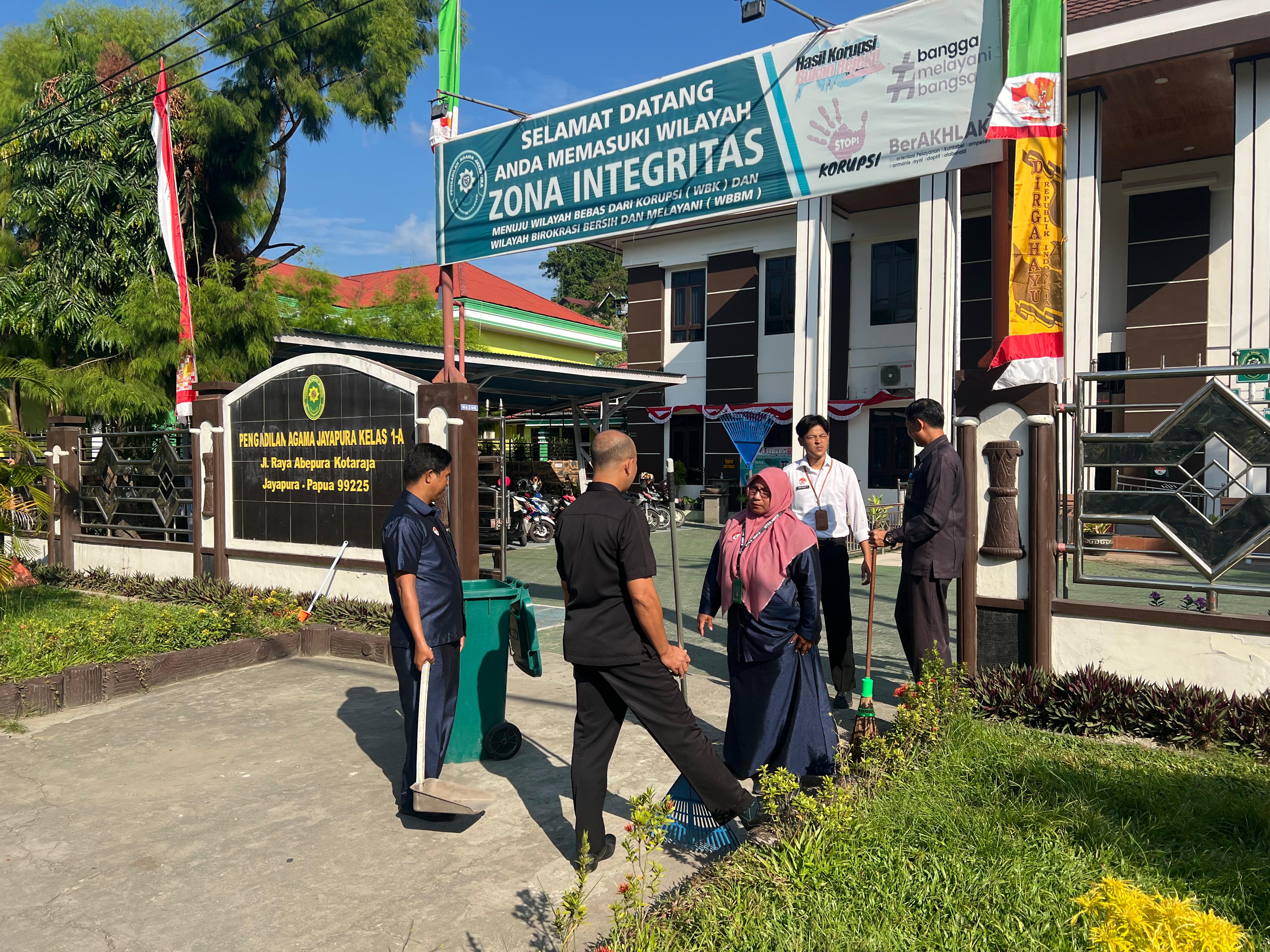 Jayapura, 05 Agustus 2025 - Memasuki bulan Agustus, Pengadilan Agama (PA) Jayapura hari ini Selasa (05/08) secara rutin menggelar Gerakan Anti Sampah, Anti Gratifikasi, Briefing dan Do'a (GRATIS BRO). Dengan semangat dan kekompakan Pimpinan, Sekretaris, Panitra, dan seluruh aparatur, kegiatan ini berjalan dengan lancar dan menciptakan lingkungan kantor yang bersih dan rapih.