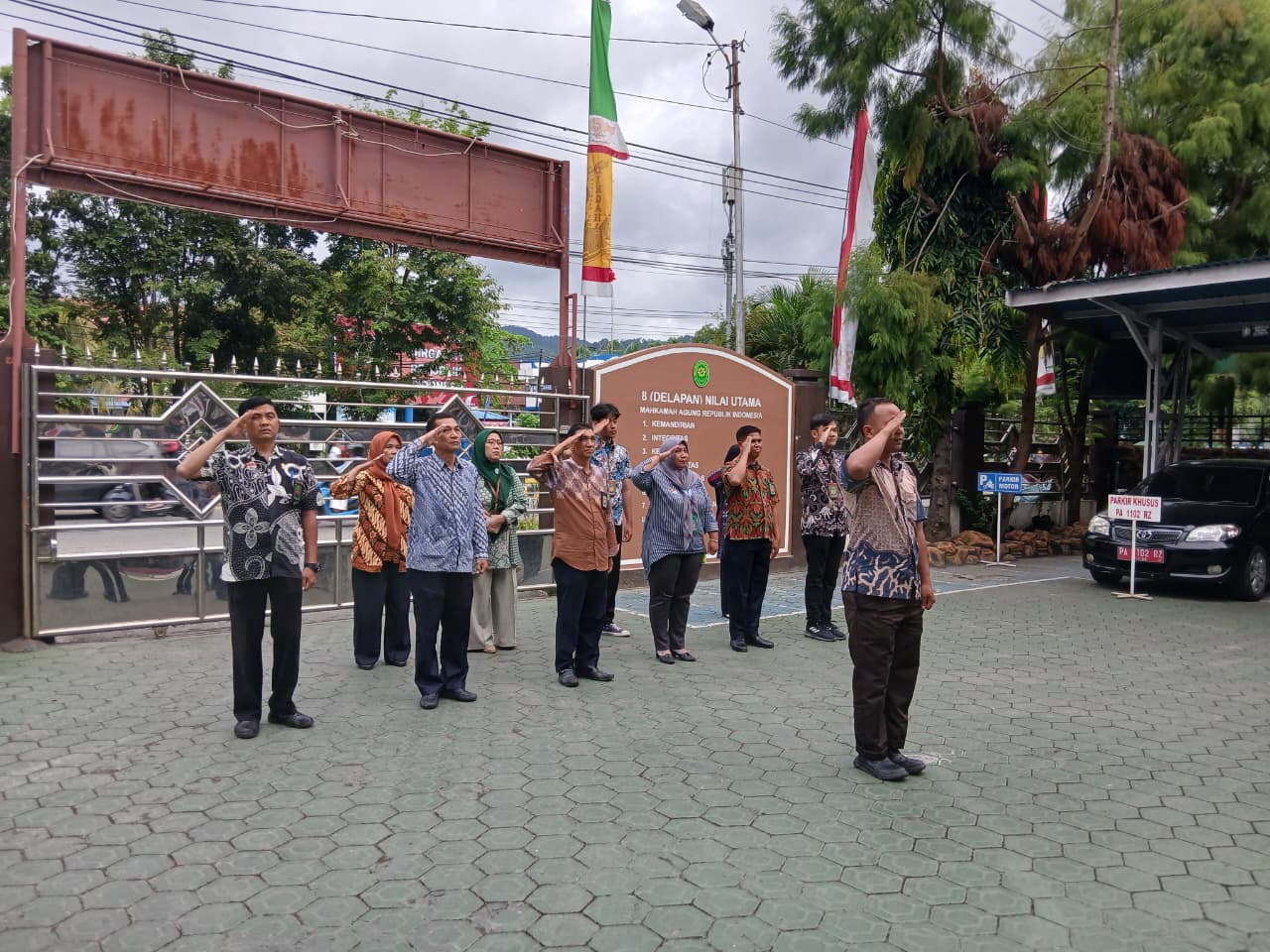 Jayapura, 22 Agustus 2025 -- Bertempat di halaman kantor, hari ini (Jum'at, 22/08) Seluruh aparatur Pengadilan Agama (PA) Jayapura tetap melaksanakan apel sore. Tepat pukul 17.00 WIT, Pimpinan, Hakim, para Pejabat Fungsional dan Struktural, staf, Cpns dan PPNPN PA Jayapura berbaris sesuai dengan format Surat Edaran Dirjen Badilag MA RI. Susunan acara apel ini dibacakan oleh Vira Adelia Septory S.T sebagai pembawa acara.