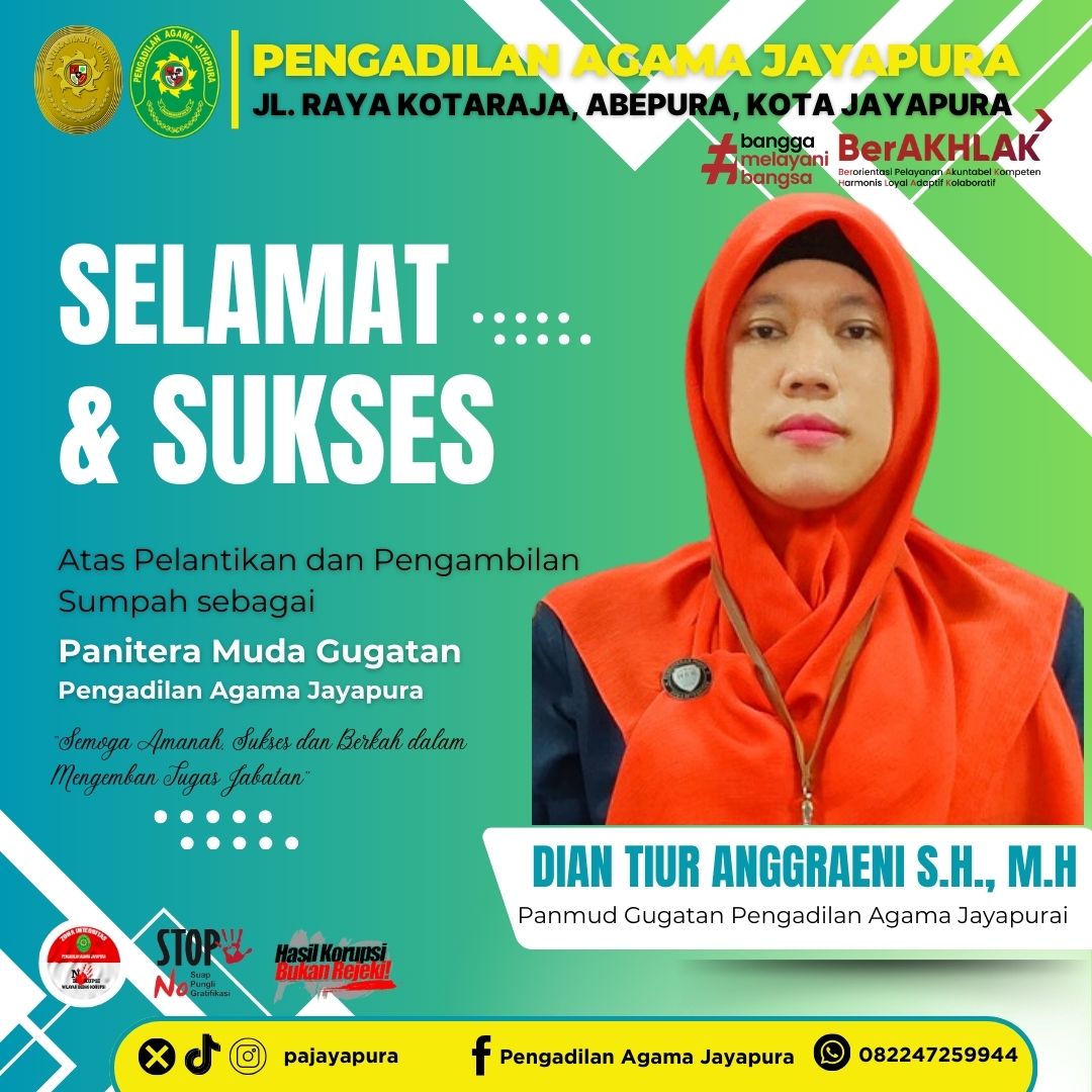 DIAN TIUR ANGGRAENI, S.H..M.H (Panitera Muda Gugatan Pengadilan Agama Jayapura )