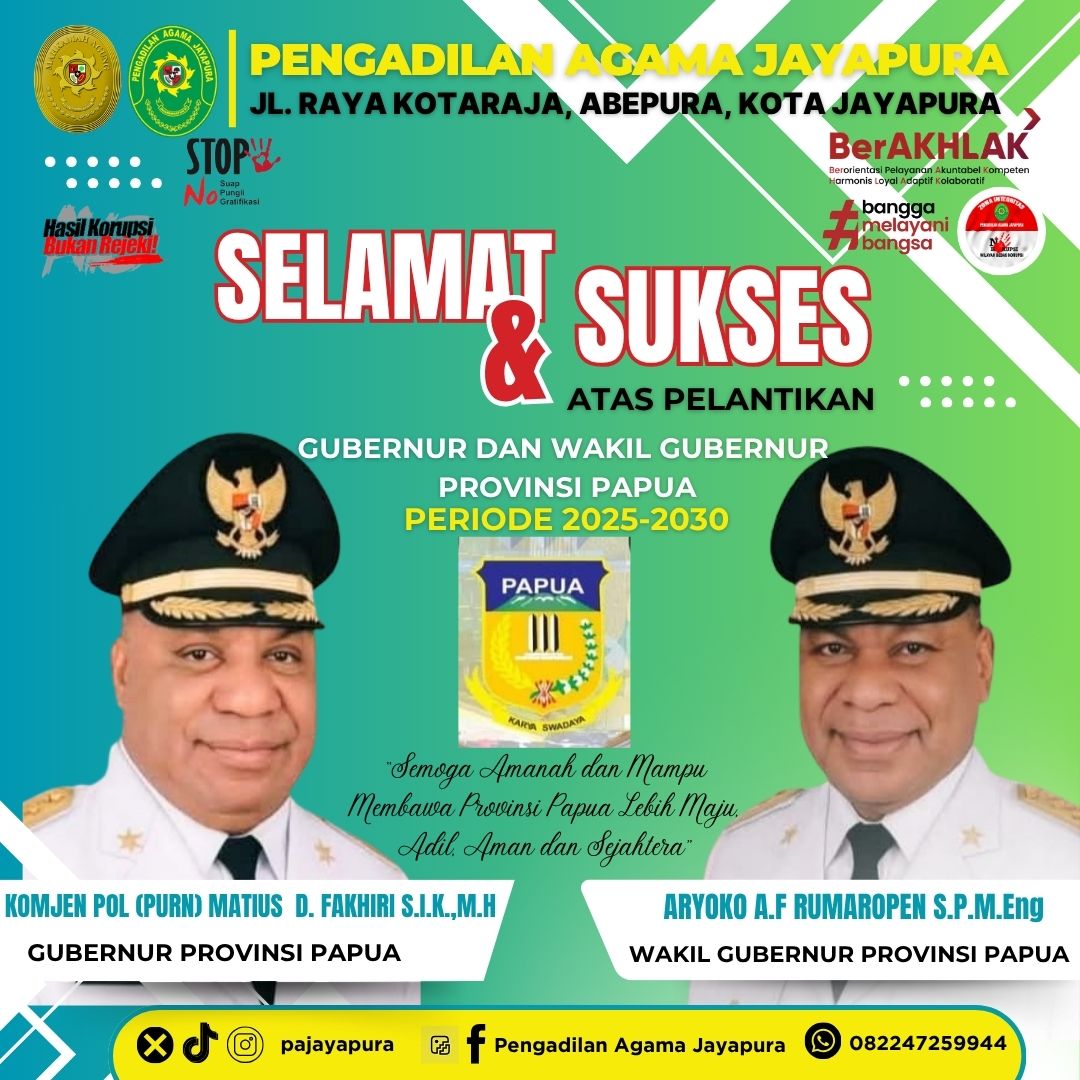 Selamat dan Sukses atas Pelantikan Gubernur dan Wakil Gubernur Provinsi Papua