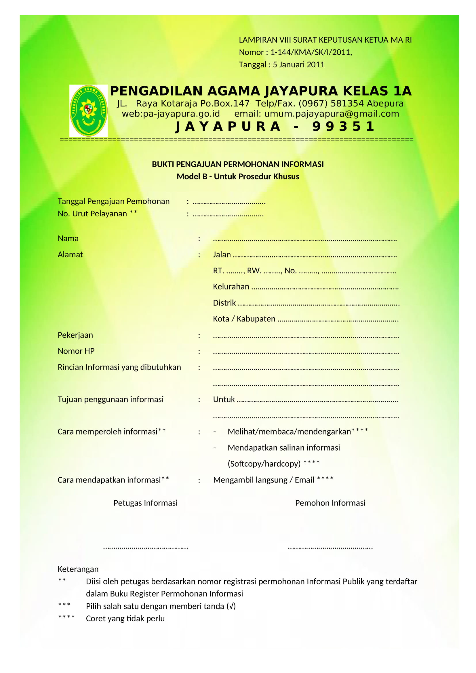CONTOH FORMULIR PERMINTAAN INFORMASI