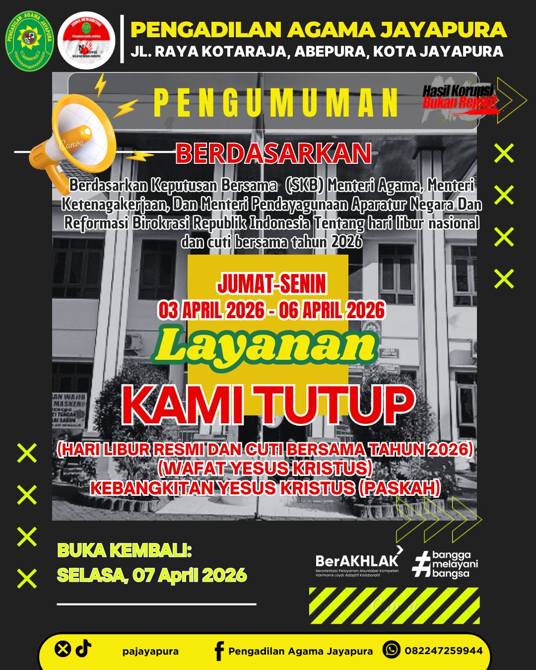 LAYANAN KAMI TUTUP: JUMAT - SENIN (03 – 06 APRIL TAHUN 2026)