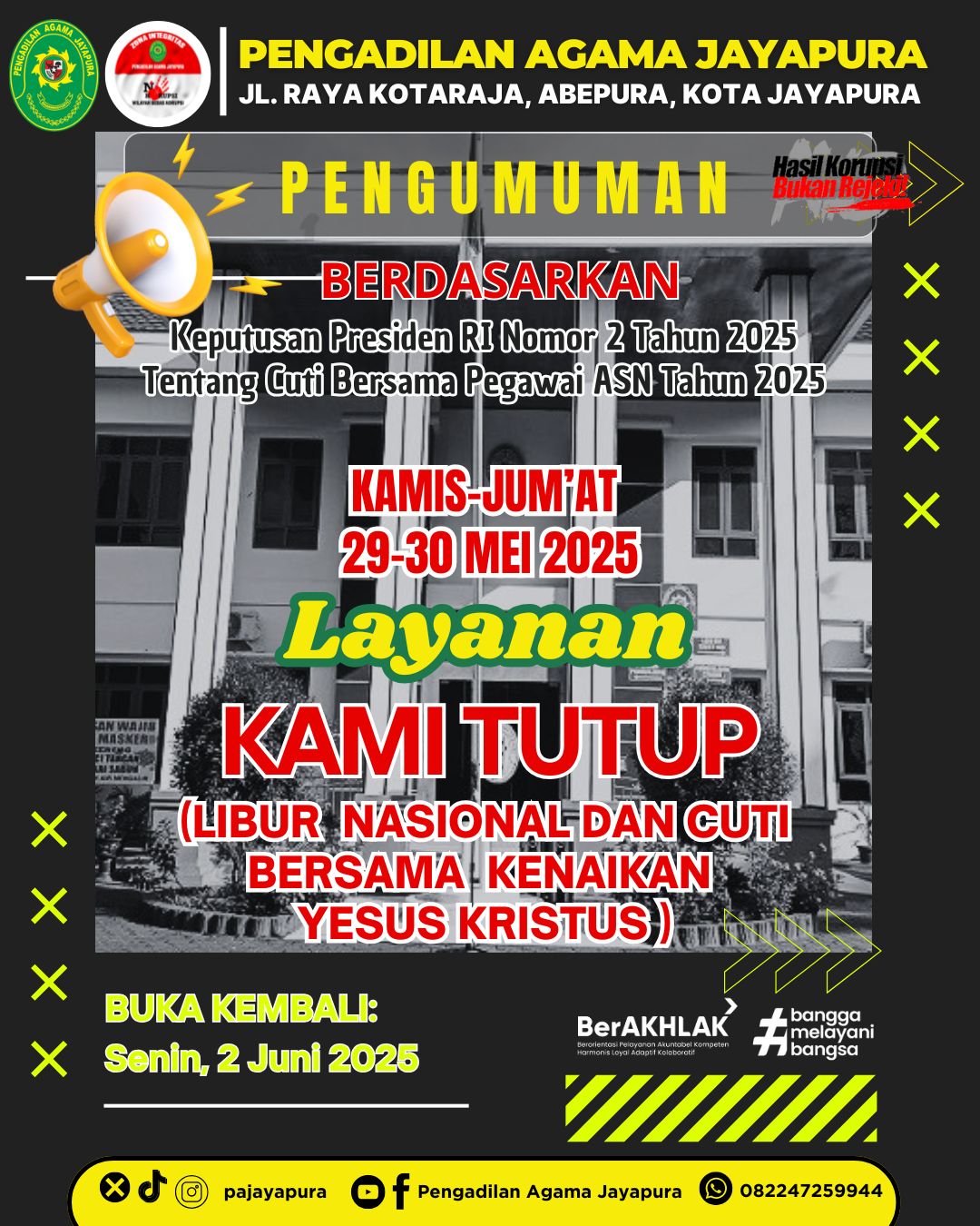 LAYANAN KAMI TUTUP: KAMIS-JUM'AT (29-30 MEI 2025)