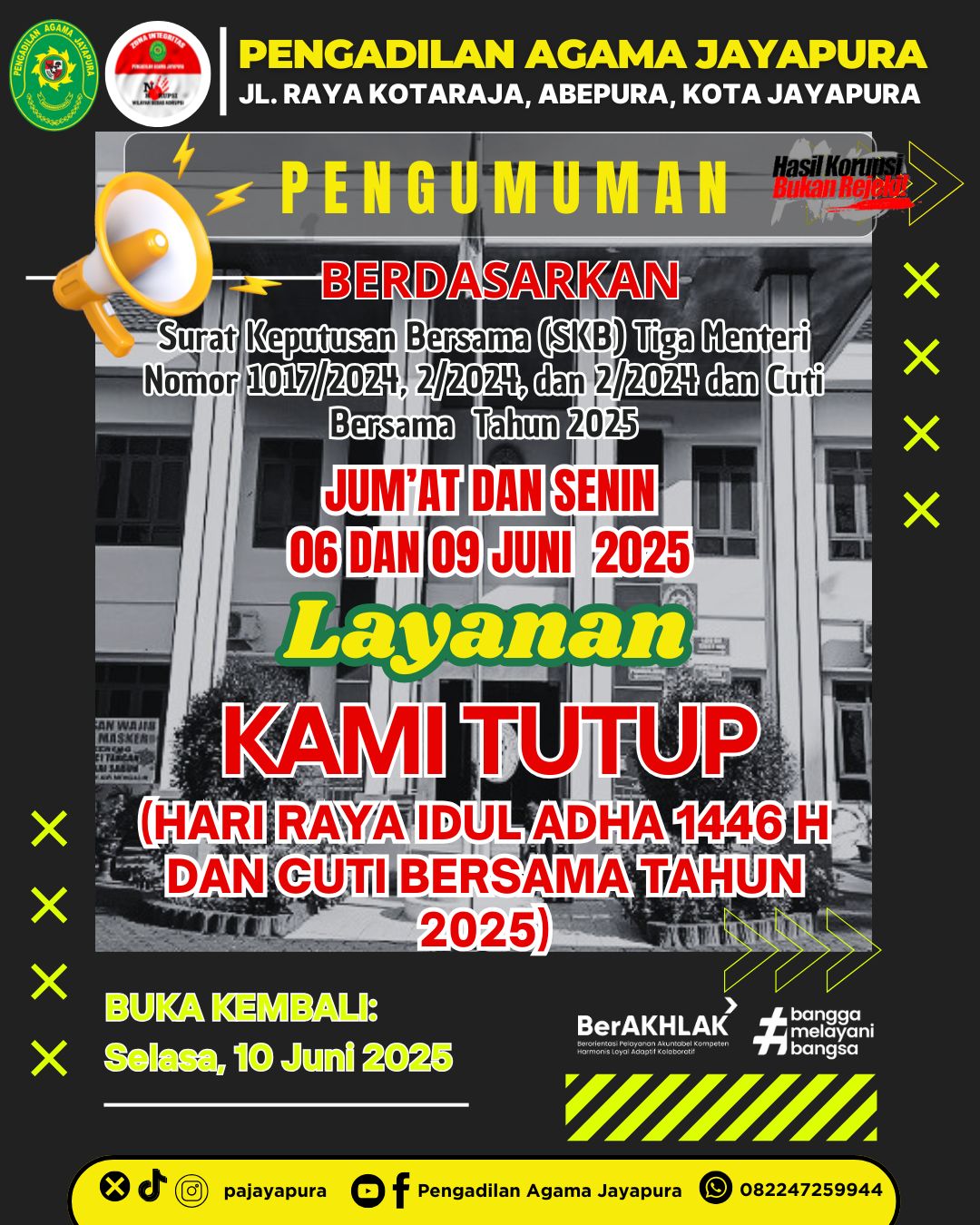 LAYANAN KAMI TUTUP: JUM'AT DAN SENIN (06 DAN 09 TAHUN 2025)