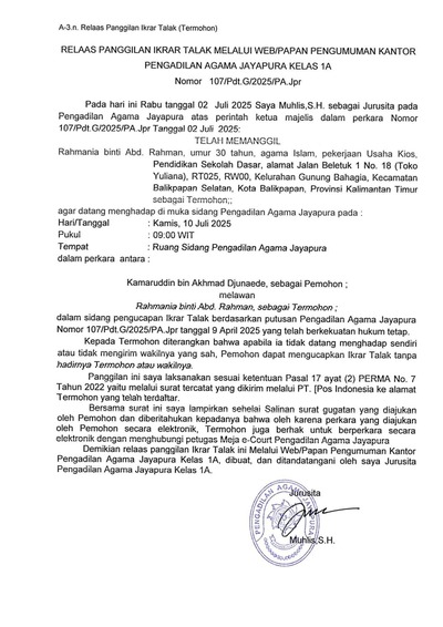 SELAMAT DATANG DI WEBSITE RESMI PENGADILAN AGAMA JAYAPURA KELAS IA || HATI-HATI TERHADAP TINDAKAN PENIPUAN YANG MENGATASNAMAKAN PIMPINAN, PEJABAT DAN PEGAWAI PENGADILAN AGAMA JAYAPURA KELAS IA TERKAIT PROSES PERKARA DENGAN PERMINTAAN IMBALAN SEJUMLAH UANG || WUJUDKAN PERADILAN AGAMA YANG PRIMA (PROFESIONAL, RAMAH, INFORMATIF, MELAYANI DAN AKUNTABEL)