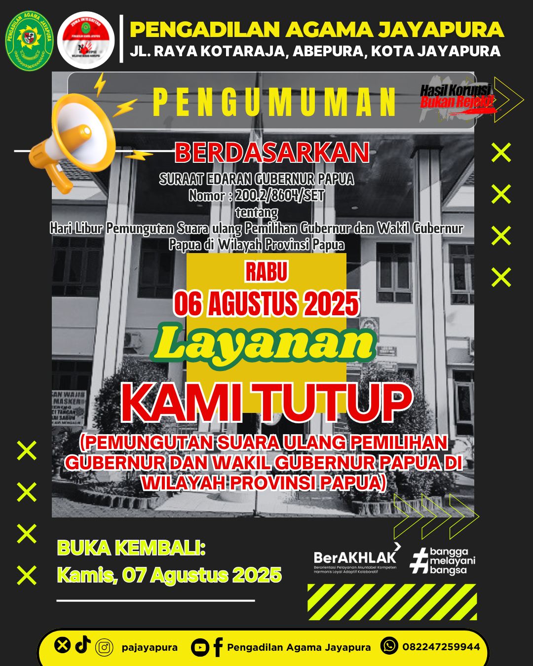 LAYANAN KAMI TUTUP: RABU (06 AGUSTUS TAHUN 2025)